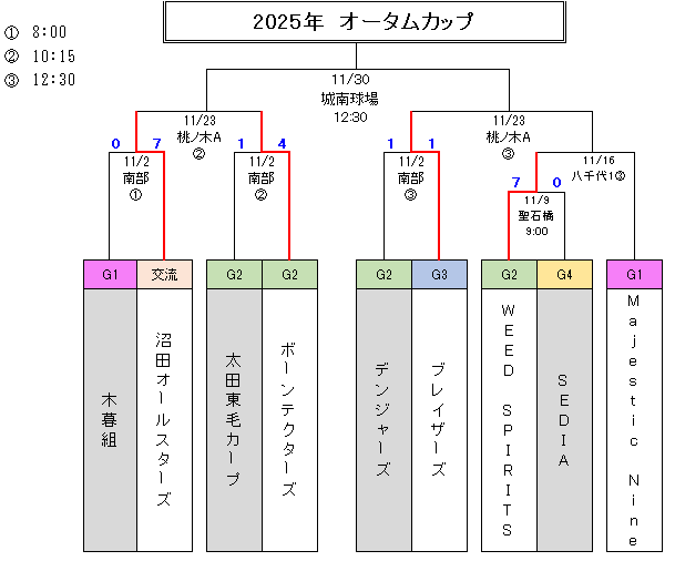 決勝トーナメント(G3/G4)、オータムカップの結果を更新しました~11月2日UP~