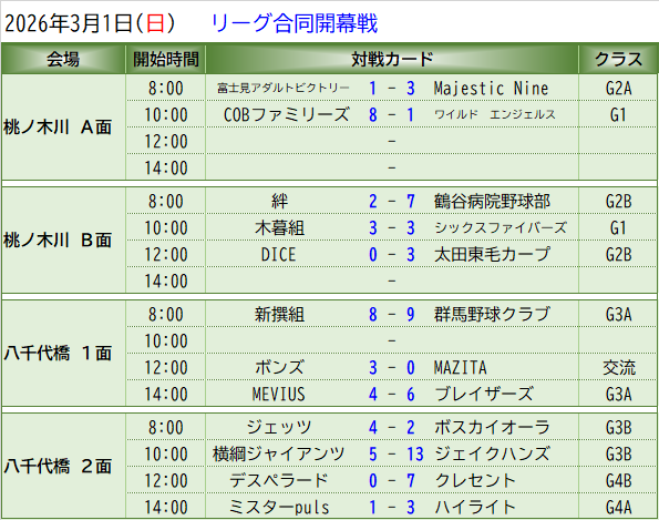 2026年度の合同開幕戦は3月1日に2会場(高崎、前橋)で行われます。